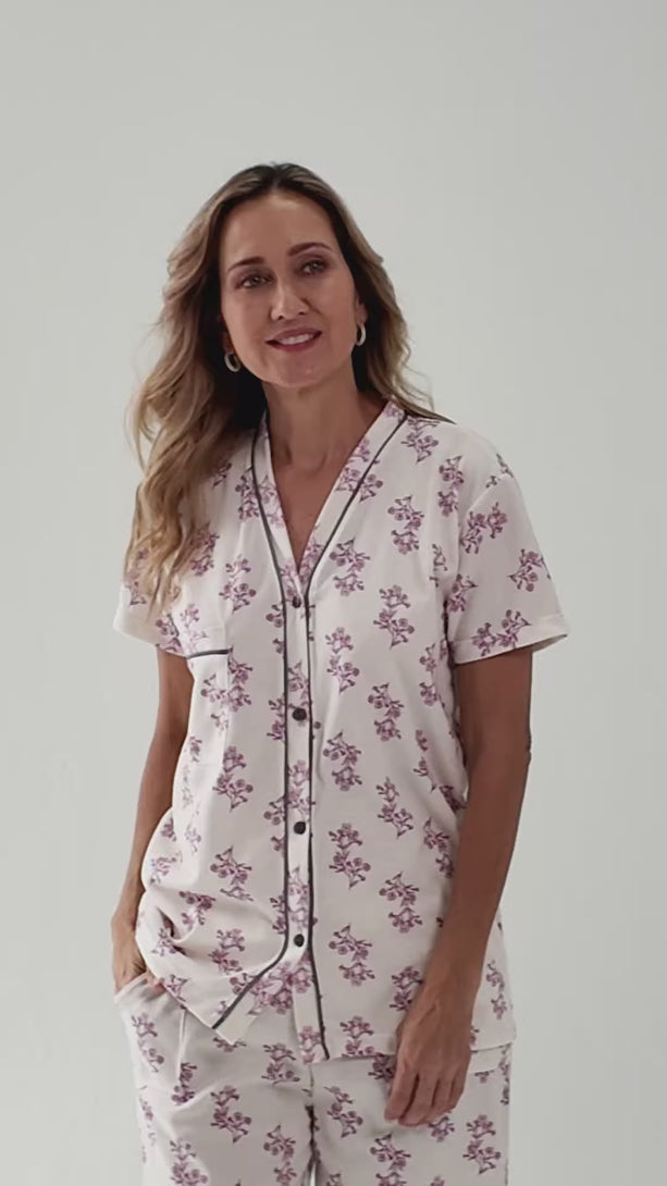 - Set de pijama: camisa manga corta + pantalón amplio
